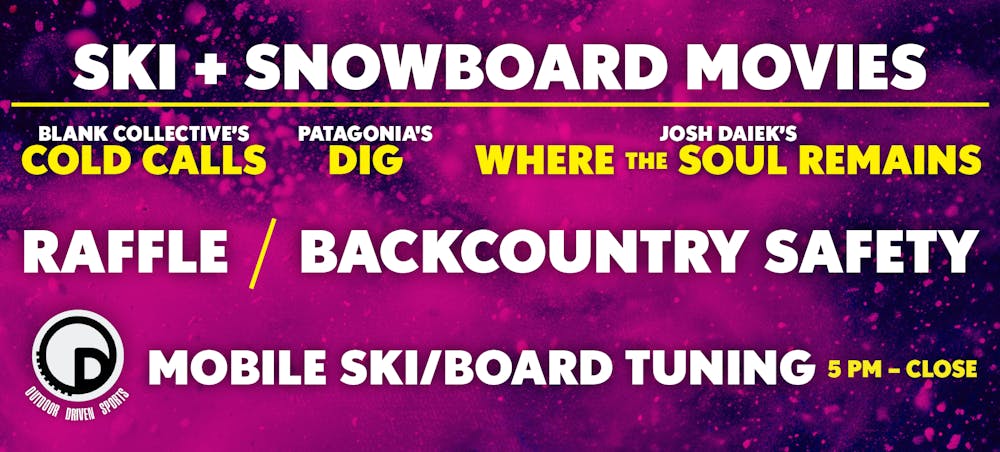 Sierra Snow Sessions is BACK, Thursday, Nov. 20th from 6-8 pm! We’ll be showing epic ski and snowboard films from Blank Collective, Patagonia, and Tahoe's own backcountry legend Josh Daiek that'll have you counting down the days until first chair. Sierra Avalanche Center will be dropping knowledge on terrain selection and mapping tools that could save your season (and your life) in the backcountry. Closing out the evening, we’ll be raffling off gear and prizes from Sierra Avalanche Center, Outdoor Driven Sports, and Schussboom. Every ticket and raffle entry directly supports the Sierra Avalanche Center's life-saving work of keeping our backcountry safer all season long.